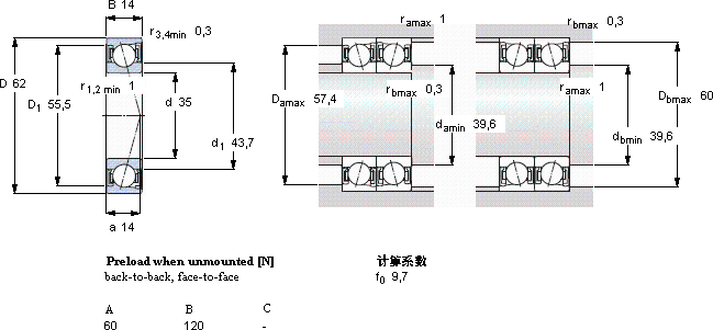 主要数据尺寸 基本负荷额定值 疲劳负荷限值 可达到的速度 体积 型号