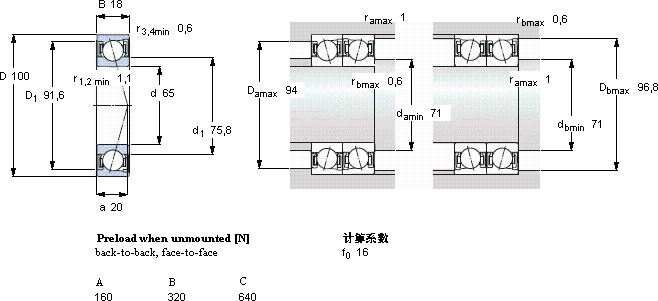 | 65 | 100 | 18 | 41,6 | 37,5 | 1,6 | 14000 | - | 0,42 | S7013 CD/P4A | - |