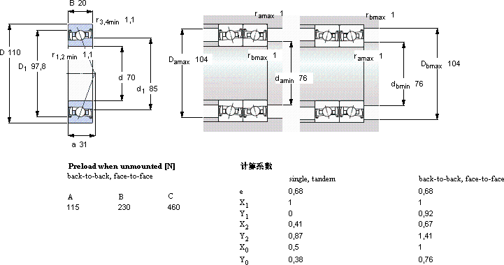 | 70 | 110 | 20 | 24,7 | 27 | 1,14 | 14000 | - | 0,64 | S7014 DB/P7 | - | |