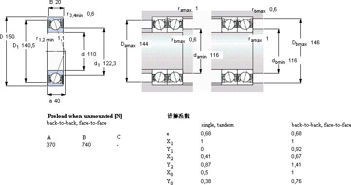 | 110 | 150 | 20 | 58,5 | 68 | 2,55 | 8500 | - | 0,72 | S71922 ACD/HCP4A | - | |