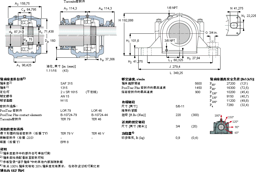 | 型号 | 基本负荷额定值, | 主要数据尺寸 | 迷宫密封件 | PosiTrac 密封件 | PosiTrac Plus密封件 | Taconite密封件 | |||||