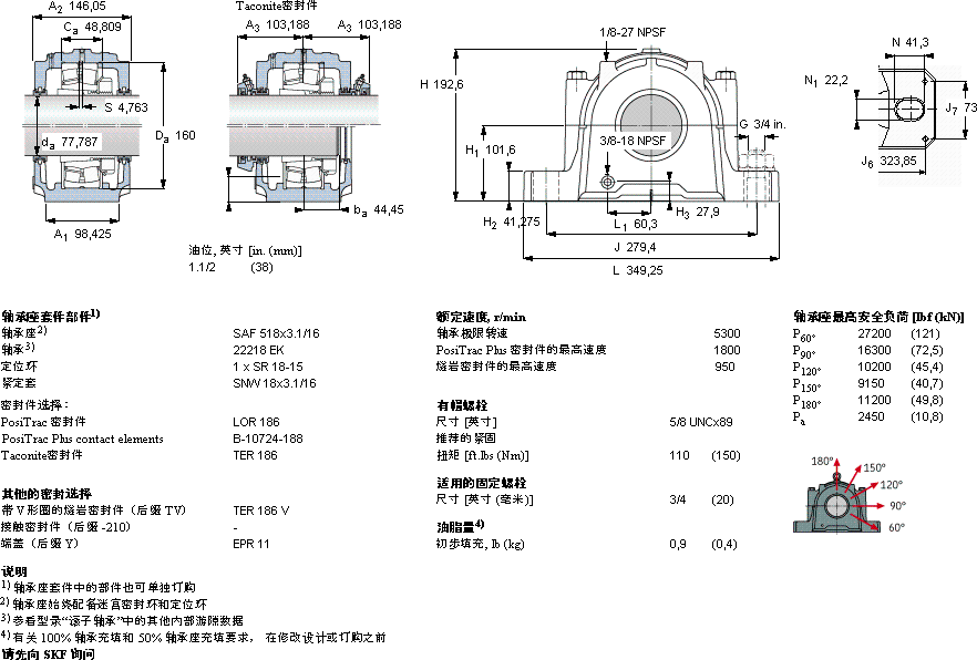 | 型号 | 基本负荷额定值, | 主要数据尺寸 | 迷宫密封件 | PosiTrac 密封件 | PosiTrac Plus密封件 | Taconite密封件 | |||||