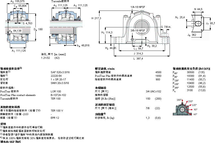 | | 型号 | 基本负荷额定值, | 主要数据尺寸 | 迷宫密封件 | PosiTrac 密封件 | PosiTrac Plus密封件 | Taconite密封件 |