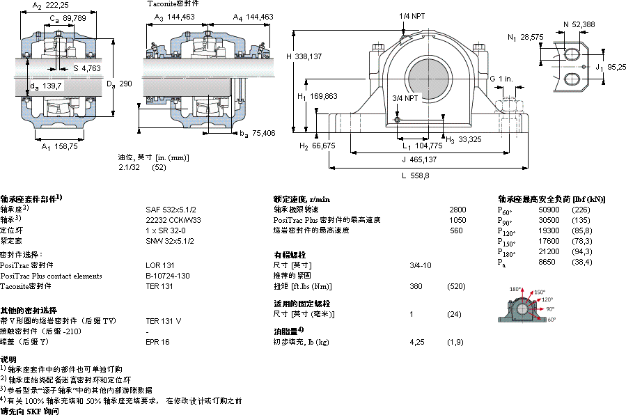 | 剖分立式轴承座, SAF 系列 - 装在紧定套上的球面滚子轴承 | |||||||||||