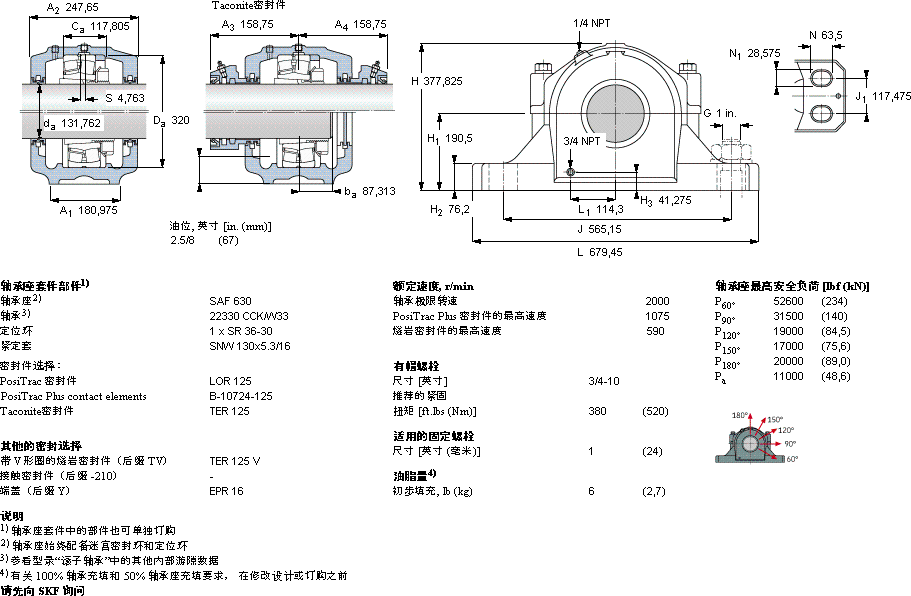 | 型号 | 基本负荷额定值, | 主要数据尺寸 | 迷宫密封件 | PosiTrac 密封件 | PosiTrac Plus密封件 | Taconite密封件 | |||||