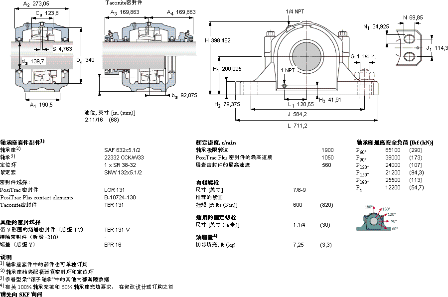 | 型号 | 基本负荷额定值, | 主要数据尺寸 | 迷宫密封件 | PosiTrac 密封件 | PosiTrac Plus密封件 | Taconite密封件 | |||||