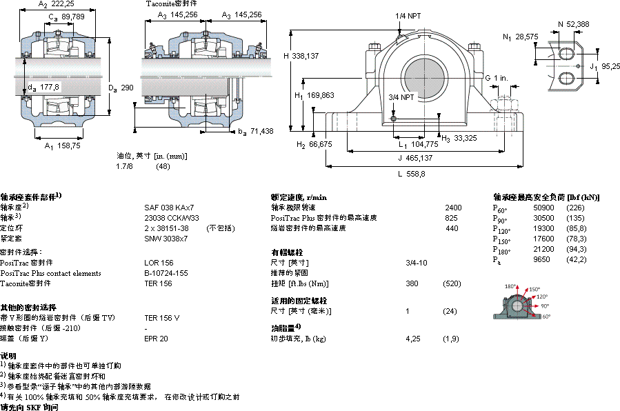 | 型号 | 基本负荷额定值, | 主要数据尺寸 | 迷宫密封件 | PosiTrac 密封件 | PosiTrac Plus密封件 | Taconite密封件 | |||||