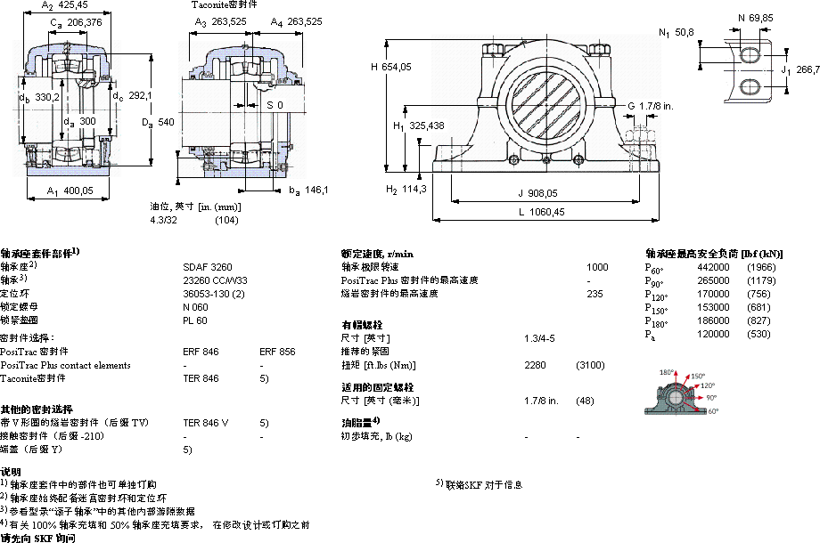 | 型号 | 基本负荷额定值, | 主要数据尺寸 | PosiTrac 密封件 | Taconite密封件 | ||||||