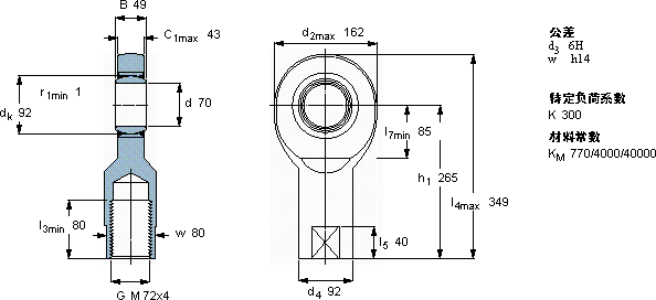 SI70TXE-2LS免维护的杆端关节轴承近似的SKF轴承型号