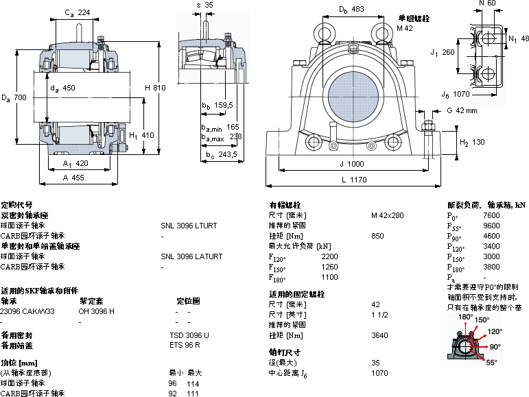 SNL3096LTURT大型SNL轴承座近似的SKF轴承型号