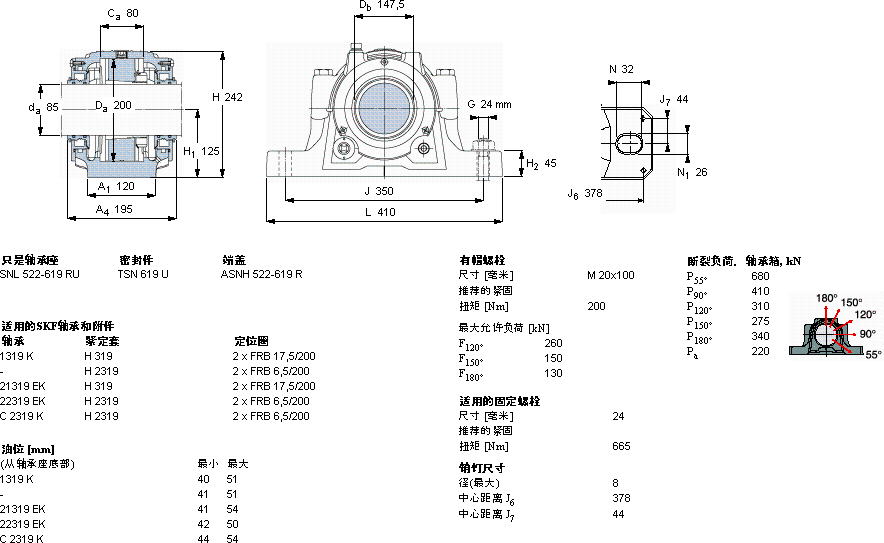 | 剖分立式轴承座, SNL,用于紧定套上的轴承,带标准密封,油封 | ||||||||||||
