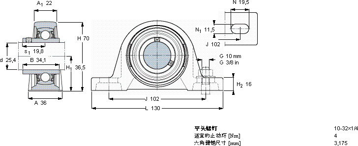 用于高温的Y-轴承单元,立式轴承座单元, 英制轴承