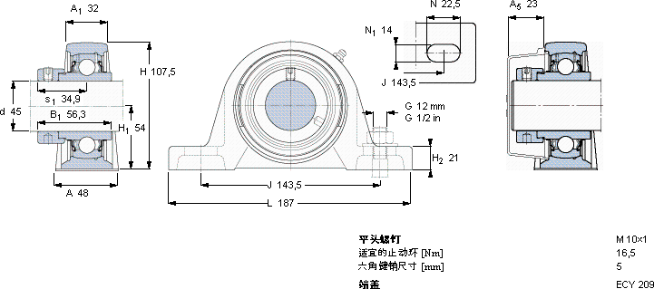 SY45WFY-轴承座单元近似的SKF轴承型号
