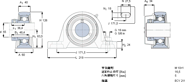 SY55FMY-轴承座单元近似的SKF轴承型号