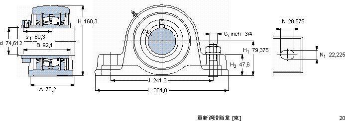 | 74,612 | 76,2 | 160,3 | 79,375 | 304,8 | 158 | 208 | 1600 | 10,9 | SYE 2.15/16 H-3 | 22215 |