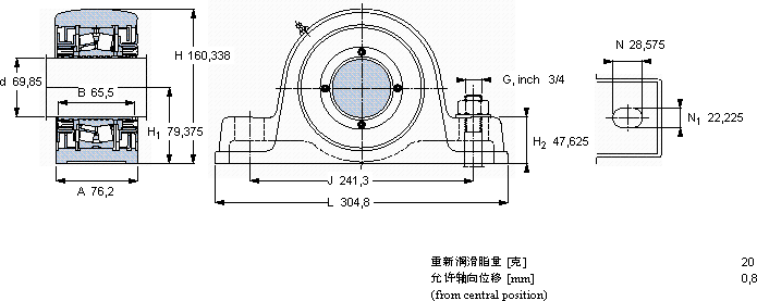 | 69,85 | 76,2 | 160,338 | 79,375 | 304,8 | 212 | 240 | 3400 | 11,3 | SYE 2.3/4 N-118 | 22215 |