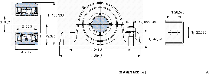 | 76,2 | 76,2 | 160,338 | 79,375 | 304,8 | 212 | 240 | 2600 | 10,7 | SYE 3 NH | 22215 |