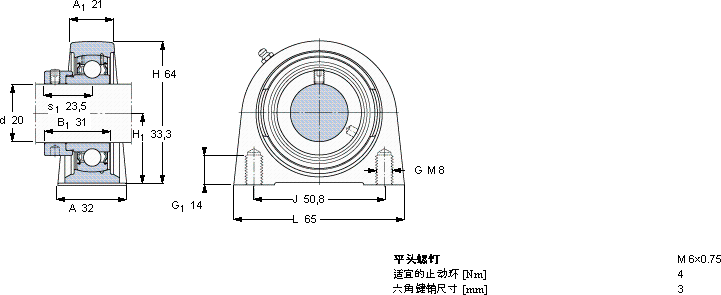 SYF20FMY-轴承座单元近似的SKF轴承型号