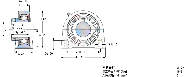 SYF40FMY-轴承座单元近似的SKF轴承型号