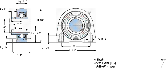 SYFJ45TFY-轴承座单元近似的SKF轴承型号