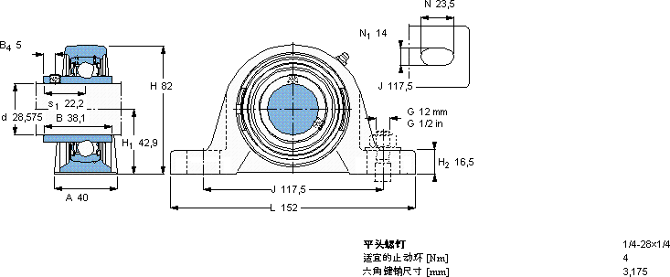 | 28,575 | 40 | 82 | 42,9 | 152 | 19,5 | 11,2 | 6300 | 1,32 | SYH 1.1/8 TF/AH | SYH 506 U/AH | YAR 206-102-2F/AH | |