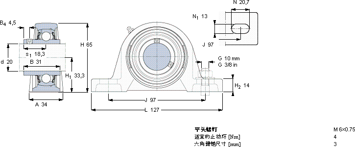 SYJ20TFY-轴承座单元近似的SKF轴承型号