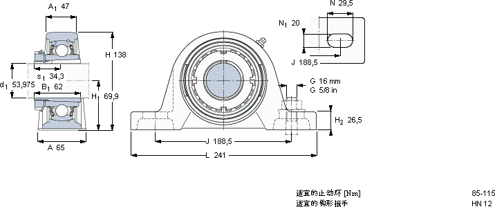 SYJ60KFY-轴承座单元近似的SKF轴承型号