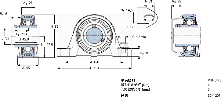 SYK35TRY-轴承座单元近似的SKF轴承型号