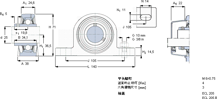 | 带轴公差 h6 | ||||||||||||