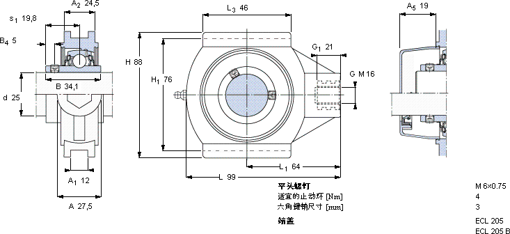 | 动态 | 静态 | 带轴公差 h6 | 轴承单元 | 轴承座 | 轴承 | |||||||