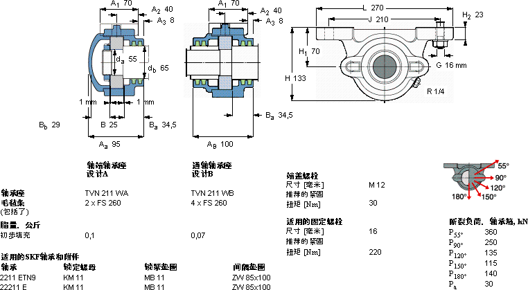 TVN211WATVN立式轴承座组座近似的SKF轴承型号