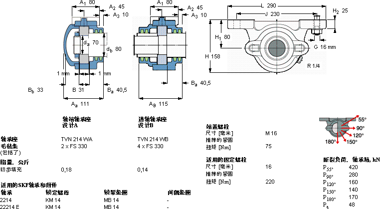 TVN214WATVN立式轴承座组座近似的SKF轴承型号