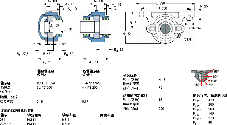 TVN311WATVN立式轴承座组座近似的SKF轴承型号