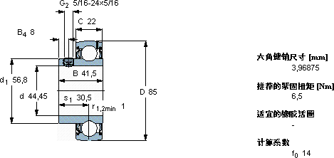 | 44,45 | 85 | 41,5 | 22 | 33,2 | 21,6 | 0,915 | 4300 | 0,50 | YAT 209-112 |